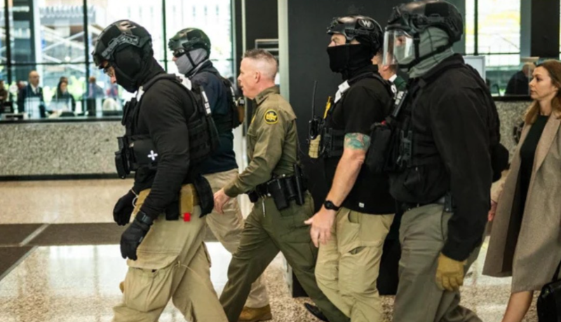 Greg Bovino, the head ICE enforcement official in Chicago enters a courtroom for sentencing. -